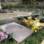 明るい日差しが降りそそぐ、緑に囲まれた墓苑です。