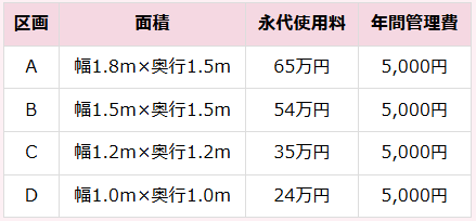 岡部るりやま墓苑では、一般墓を建てる区画は広さに応じて4タイプご用意しております。