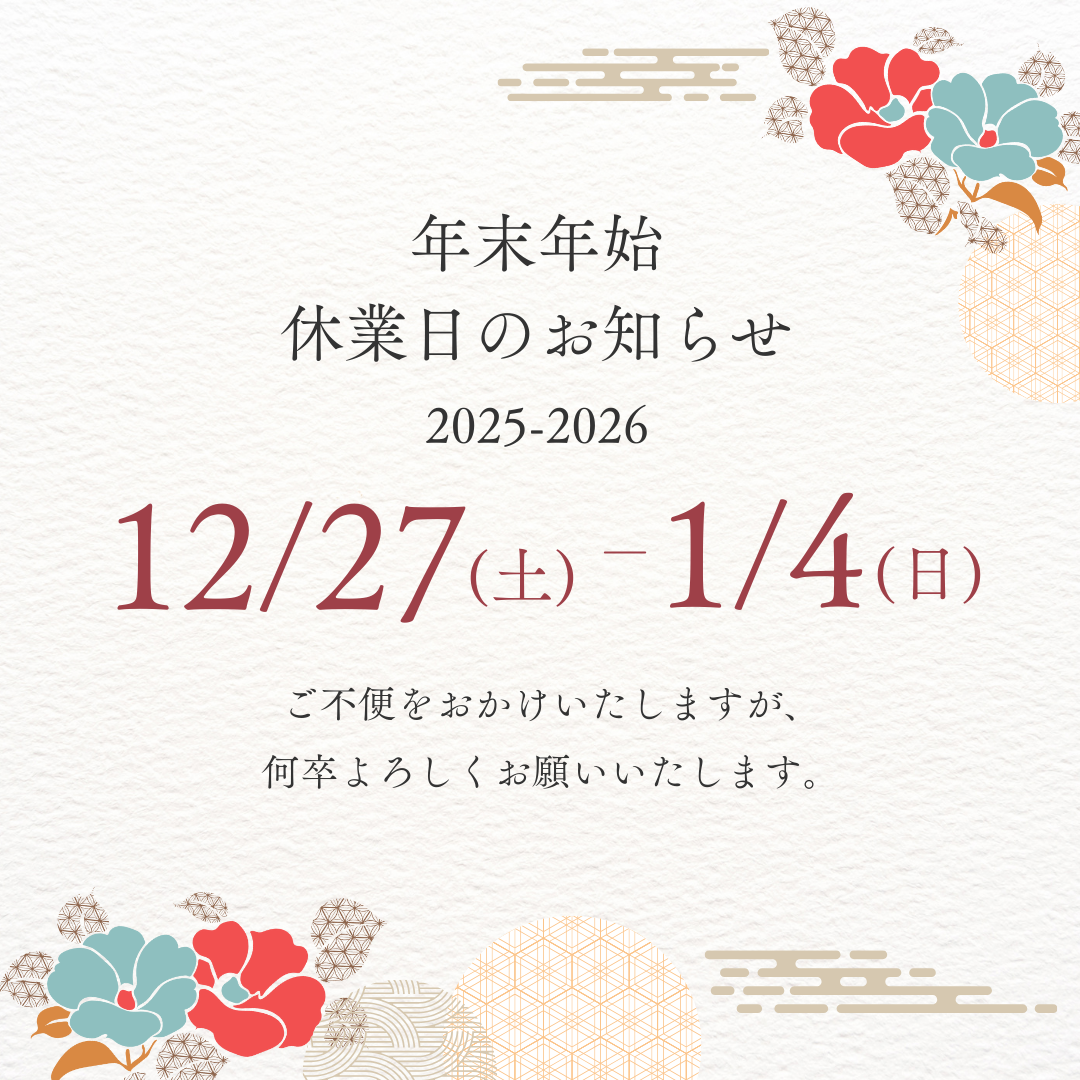 年末年始休業日のお知らせ