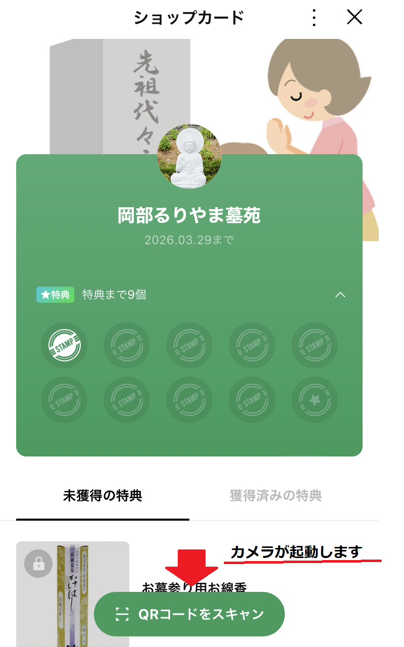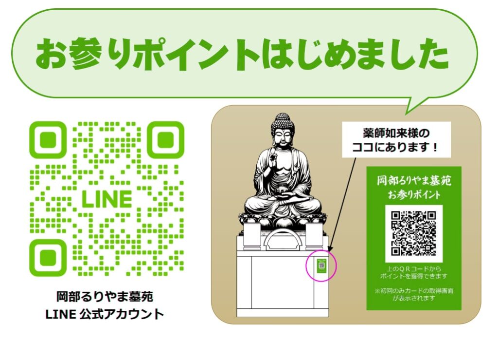 岡部るりやま墓苑の公式LINEを友達追加していただくと、ポイントをゲットすることができます♪