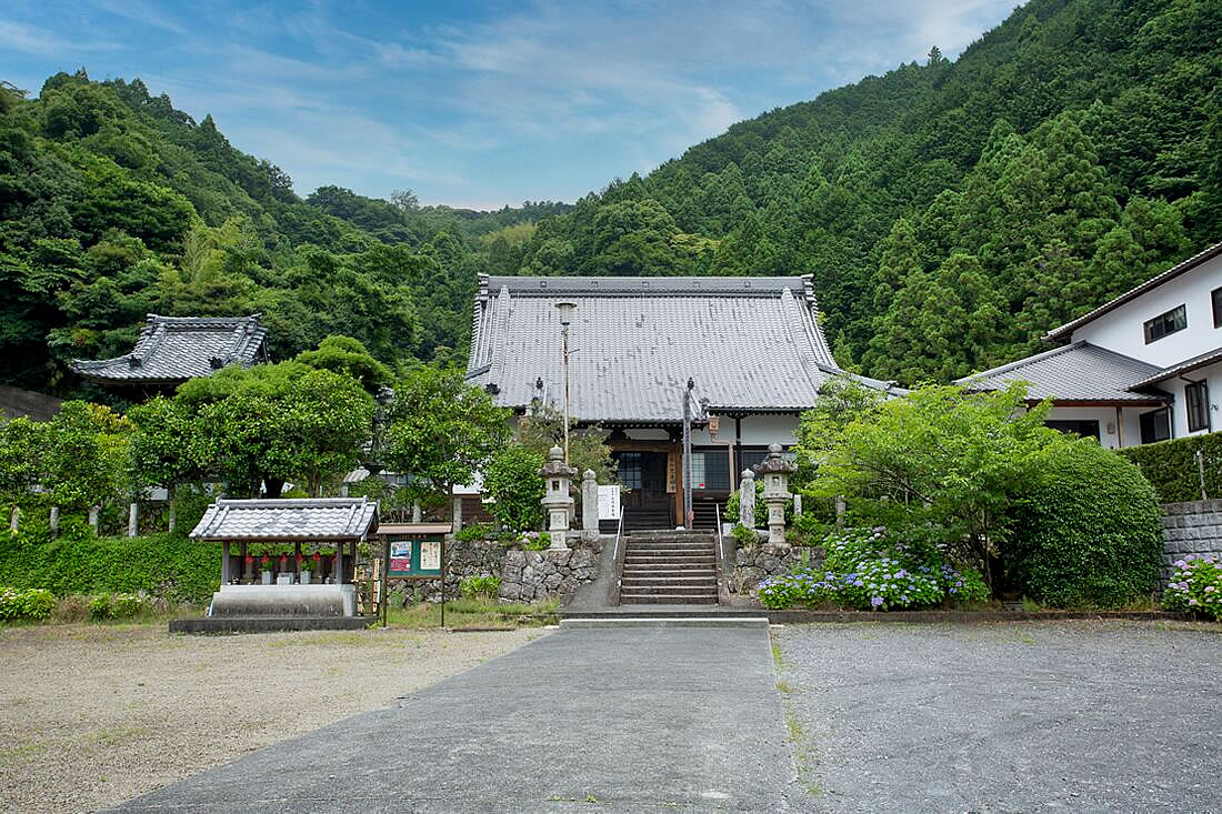 本堂の左側に位置する薬師堂で、寛政12年(1800年)6月13日、木喰上人行道が准砥観音像と聖徳太子像の作像にとりかかったといわれています。聖徳太子の立像は、藤枝市の有形文化財に指定され、大切に守られています。